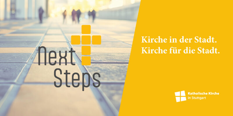 Die Katholische Kirche Stuttgart hat mit dem Prozess Next Steps begonnen, ihre Kirche so zu gestalten, dass sie für Menschen ansprechend bleibt, gleichzeitig aber mit deutlich geringeren Ressourcen auskommt. Hierfür wurde von mir das Logo und ein dazugehöriger Banner entwickelt.